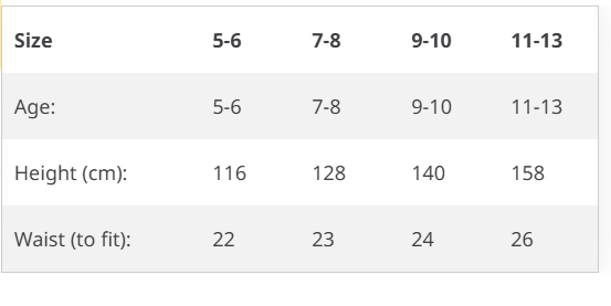 Sizes: 5/6 years- 11-13 Adult