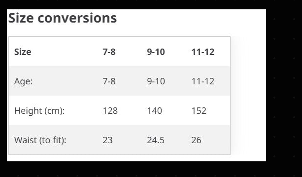 - Elasticated waistband with round cord drawcord. ( no drawcord on 3/4 year and 5/6 years)