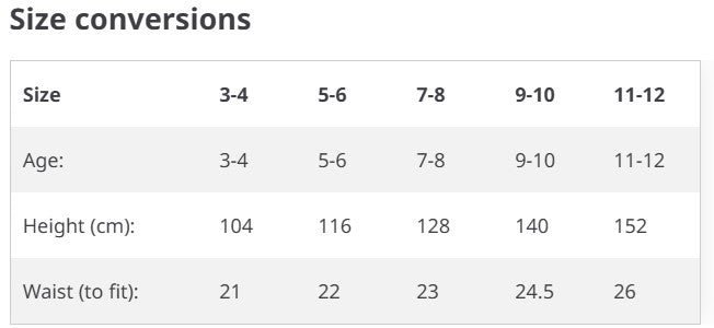 Sizes: 3/4 years to XL Adult (size charts included in images)